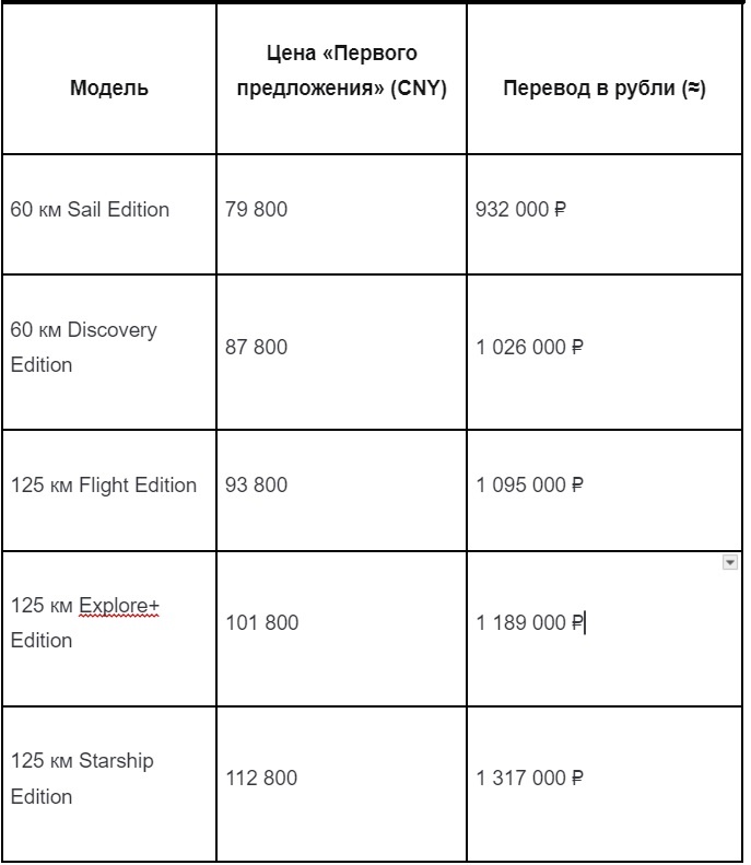 - Цена: от 89 900 юаней (~1 050 000 ₽)