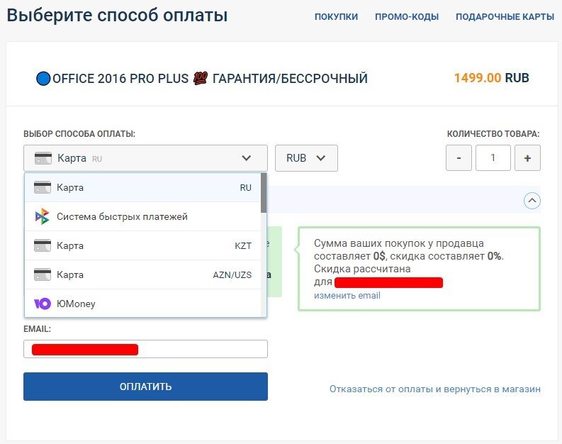 На заключительном этапе добавляем данные от выбранной системы платежей (реквизиты) и дожидаемся подтверждения оплаты.Как только оплата получит статус «успешно», нас перенесет на страницу с информацией о товаре, в т.ч. там будет находиться необходимый нам ключ активации.