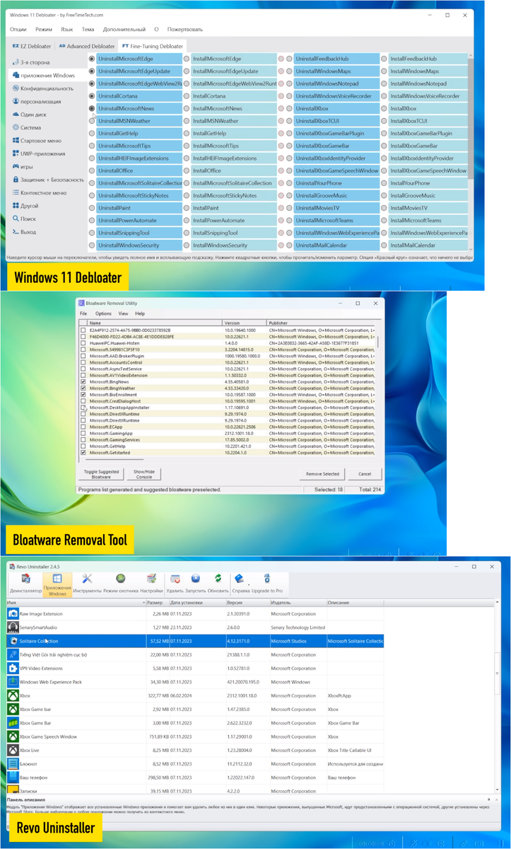 Каждую из этих программ, утилит и сервисов можно удалить по отдельности.