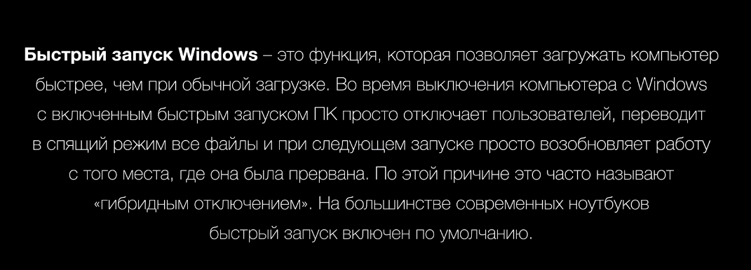 Microsoft разработала функцию быстрого запуска, которая позволяет ноутбуку переходить в режим гибернации. Это означает, что текущая сессия полностью сохраняется, включая процессы, которые были запущены две недели, месяц или даже год назад. В результате, наша оперативная память никогда полностью не освобождается, что может привести к снижению производительности.