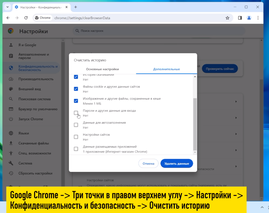 Но не забудьте поставить галочку, чтобы не удалить все пароли и логины к сайтам, на которых Вы регистрировались. Вы удивитесь, насколько быстрее начинают загружаться знакомые сайты после очистки истории. И особенно это касается старых медленных ноутбуков.