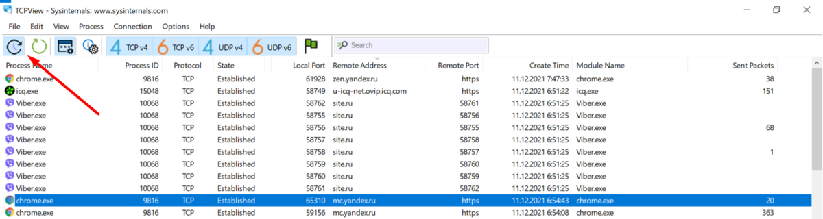 * — Загрузить программу можно с официального сайта Microsoft https://docs.microsoft.com/ru-ru/sysinternals/downloads/tcpview. Программа бесплатная и рекомендуется разработчиками Windows для анализа соединений в системе.