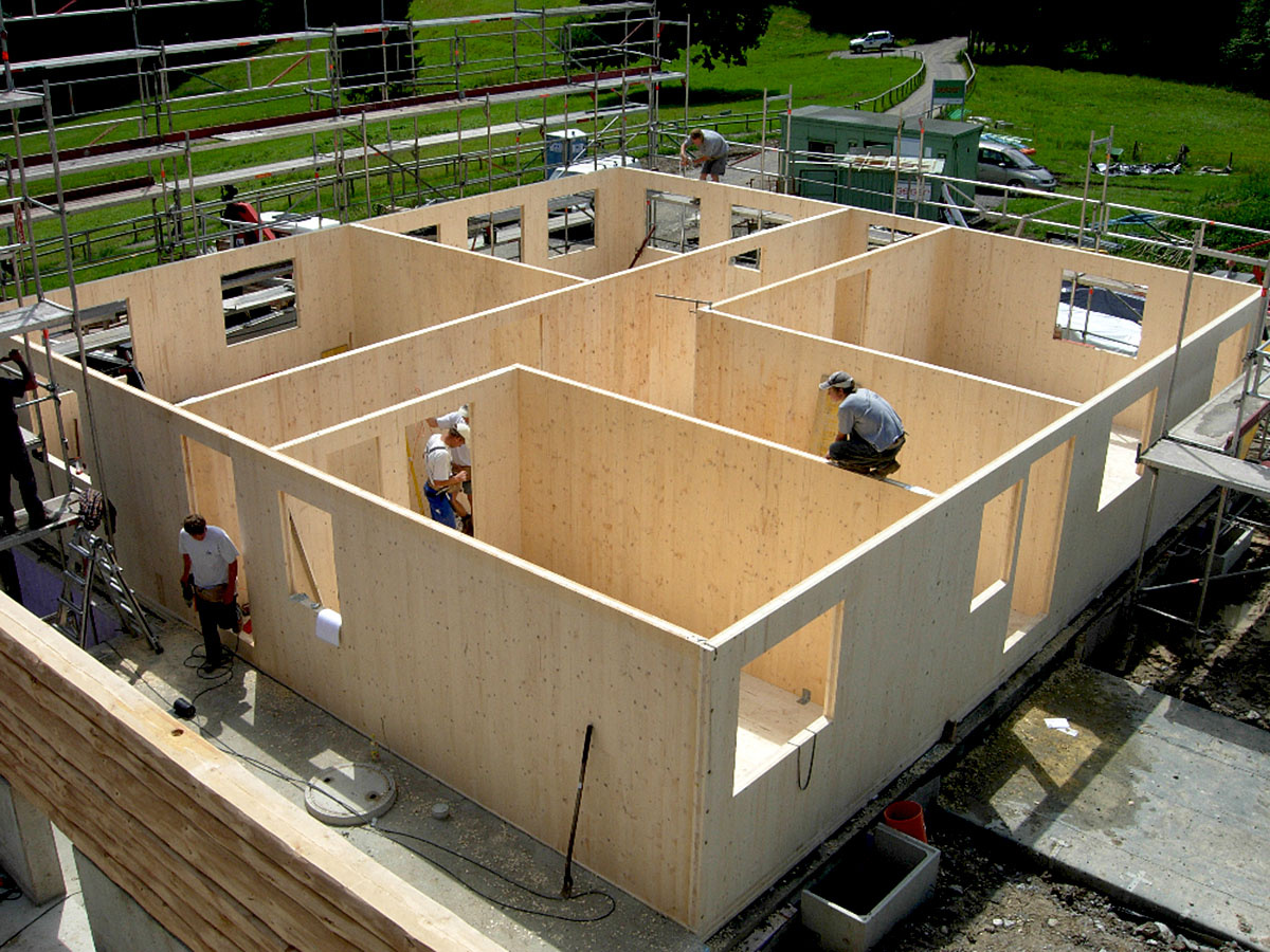 Новая технология строительства из дерева заключается в использовании многослойных панелей, изготовленных из хвойных досок камерной сушки.