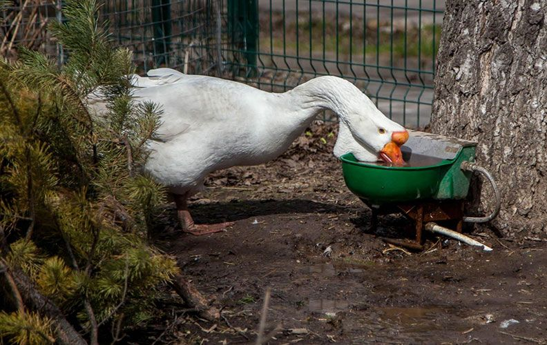 Источник: pavlovoptica.ruПомимо еды Гусям также нужна и вода. Поилки, используемые внутри птичника, необходимо установить на сетку, под которой находится поддон для сбора воды. Иначе подстилка всегда будет влажной, что рано или поздно приведет к болезням Гусей. также необходимо периодически их мыть и дезинфицировать.