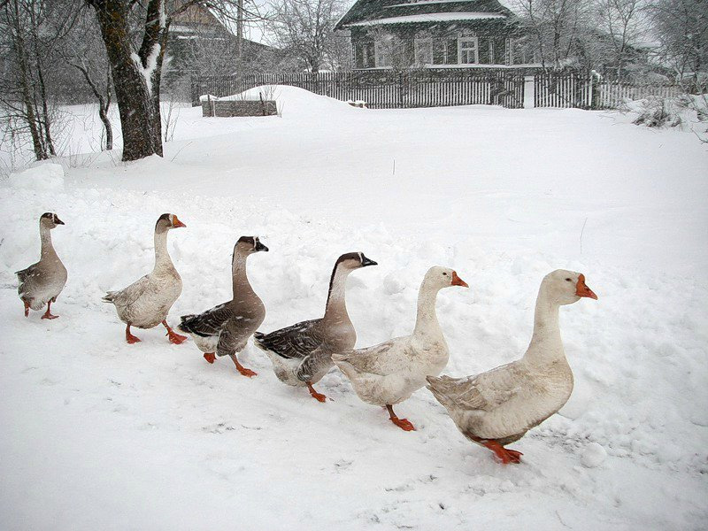 Источник: vseprodachu.ruОбогрев и освещение также необязательны. Гуси без проблем переносят зимы в условиях средних широт без отопления помещения. Некоторые породы прекрасно себя чувствуют при температуре до минус 30 градусов. Но тепло и свет благоприятно сказываются на яйценоскости и суточном приросте в зимнее время.