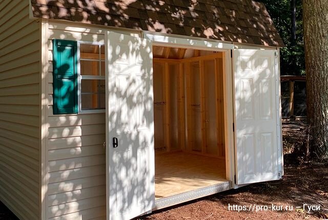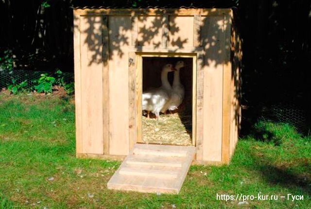 Чтобы Гусятник был сухим, его нельзя строить в тех местах, где собираются весенние паводки. Размещают его на южной стороне участка, где он будет лучше освещаться и обогреваться.