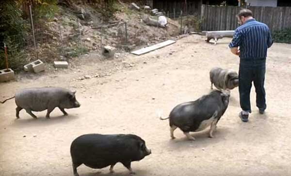 Хозяин говорит, что не имеет никаких секретов ухода за этими животными. Единственное отличие в том, что свиньям традиционных пород пищу дают варёную, а он своим сырую.