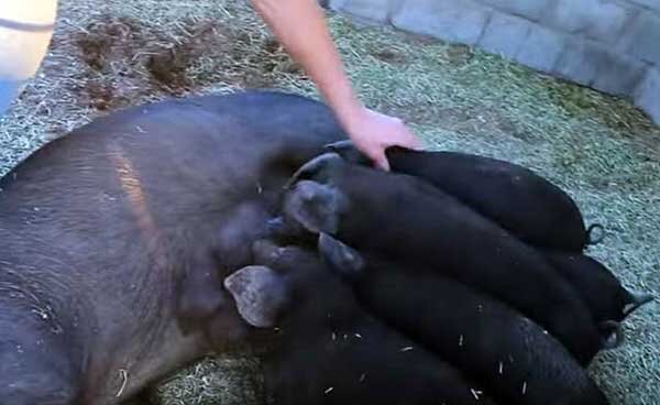 4. Свиноматки вьетнамской вислобрюхой породы очень плодовиты. Средний помет составляет 13-15 поросят, нередко самка приносит до 20-22 детенышей. В год можно получить от одной свиноматки два потомства.