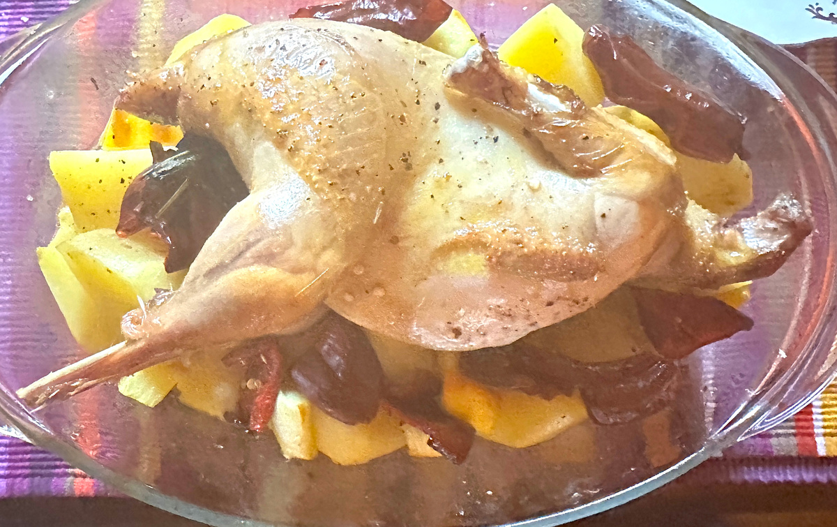Так аппетитно выглядело, что не удержался сфотографировать. Немного туманный снимок — поскольку от блюда поднимался пар.Отсюда резюмирую. Конечно, мои дачные цесарки мне интересны и дороги сами по себе, но в этом году прицельно и именно их постараюсь размножить и вырастить именно в рациональных/продуктивных целях. Ну а по осени посчитаю.